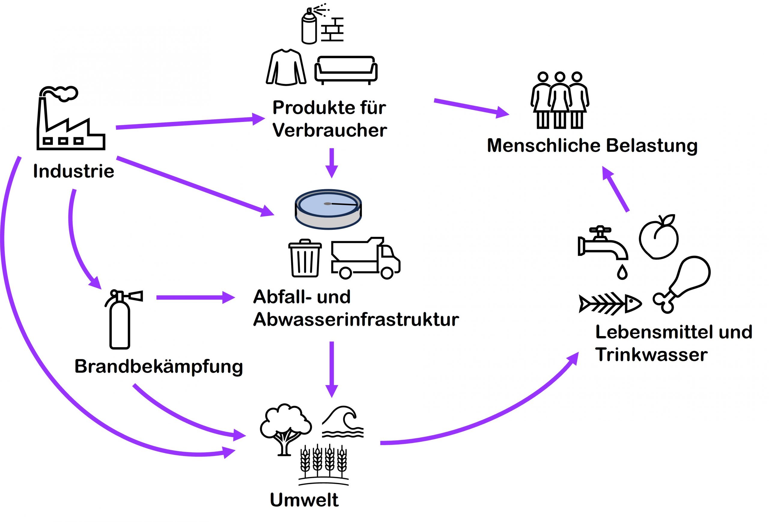PFAS in der städtischen Umwelt sind folgenden Ursprüngen zuzuordnen:
