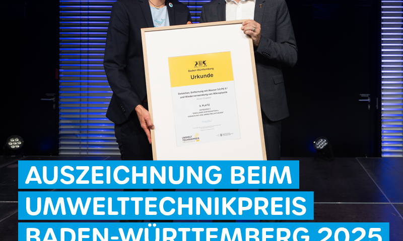 Wir wurden mit dem 3. Platz beim Umwelttechnikpreis Baden-Württemberg 2025 ausgezeichnet. Diese Würdigung ist mehr als nur ein Preis – sie ist ein kraftvolles Signal, dass unser Weg zu Wasser ohne Mikroplastik nicht nur möglich, sondern bereits Realität wird.