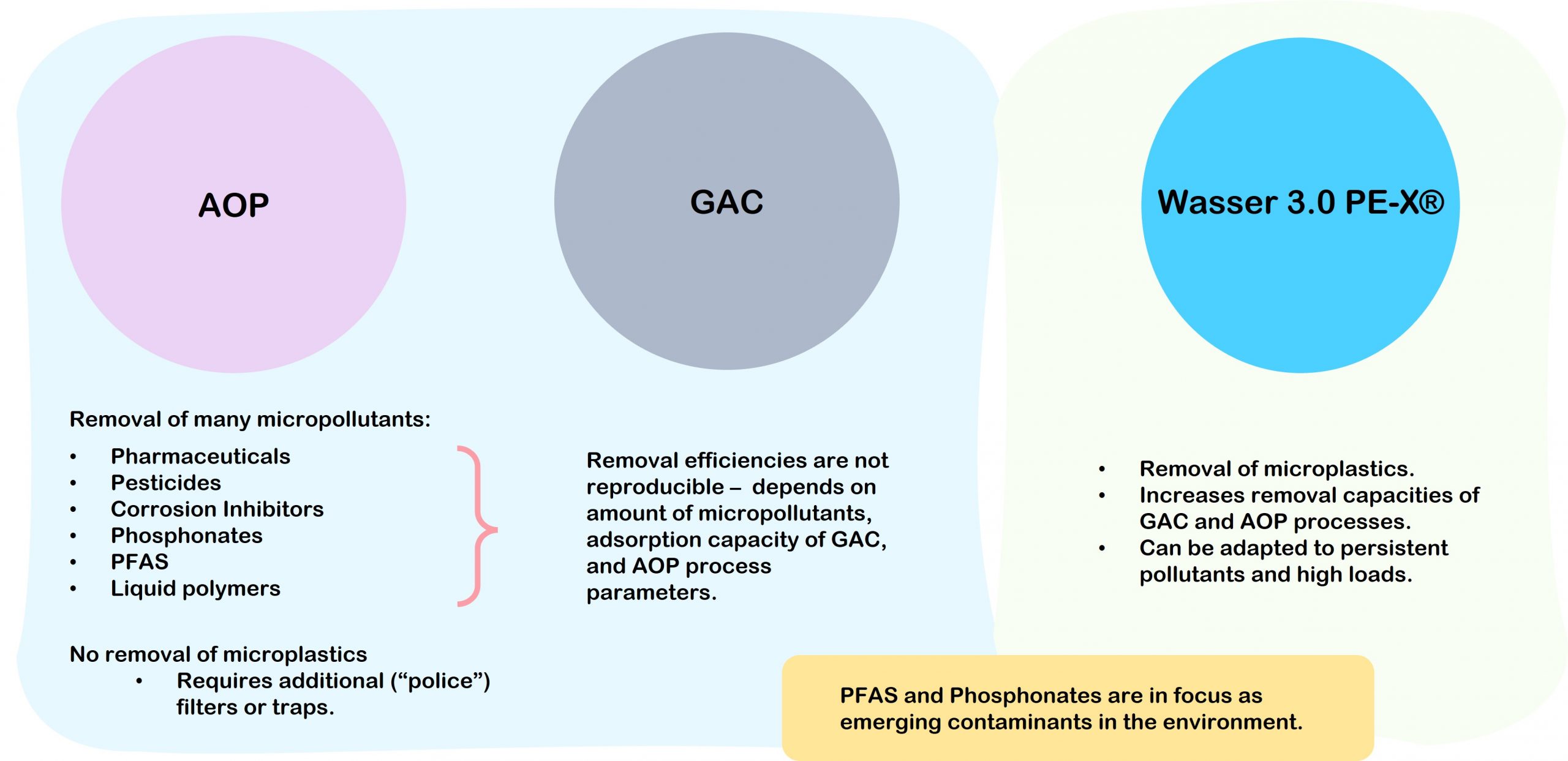 Most advanced treatment steps are designed to remove dissolved organic micropollutants, they are not intended for microplastic removal. But their capabilities for simultaneous removal of micropollutants and microplastics is often discussed.