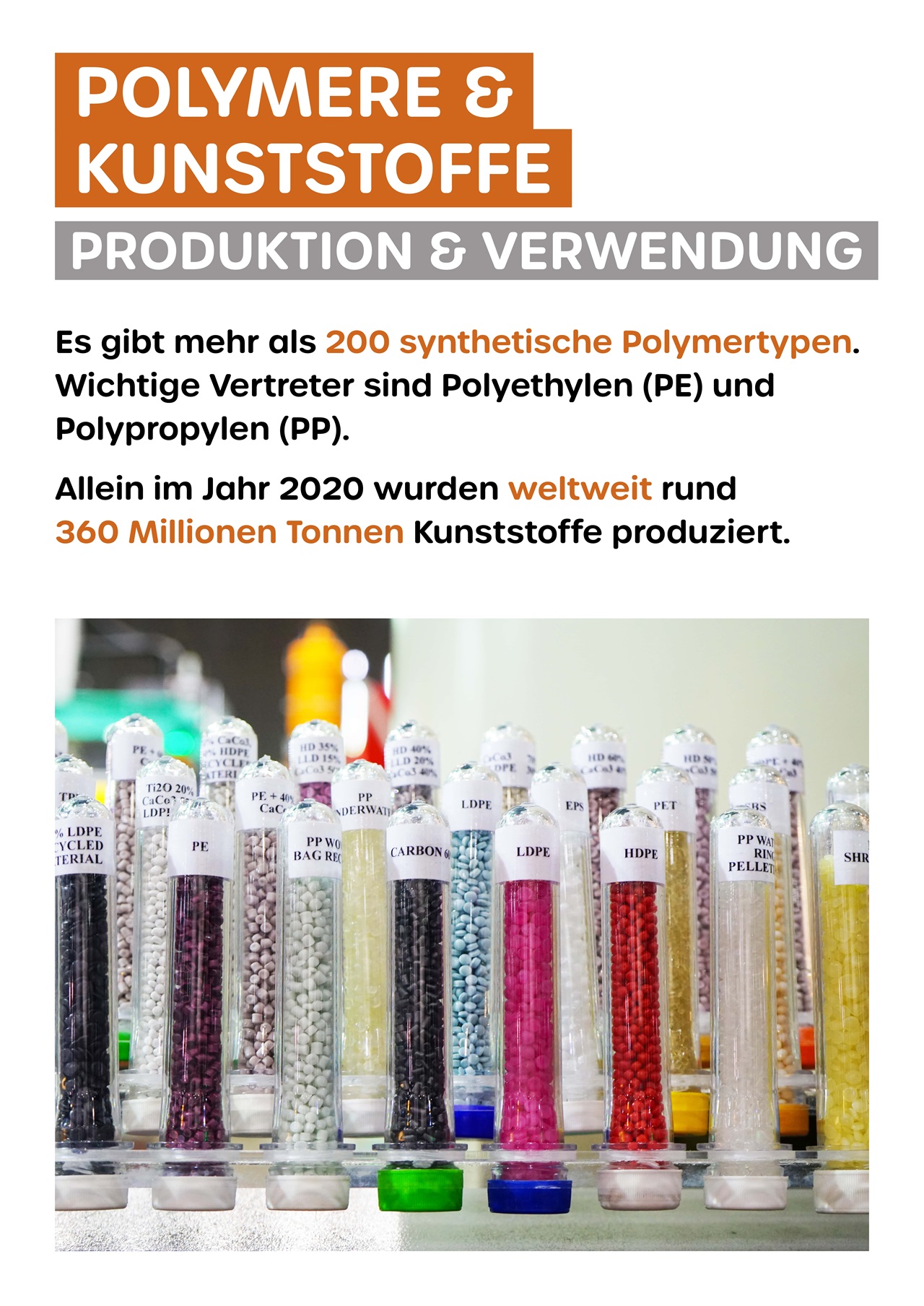 Grafiken zu Polymeren, Kunststoffen, Plastik und Mikroplastik